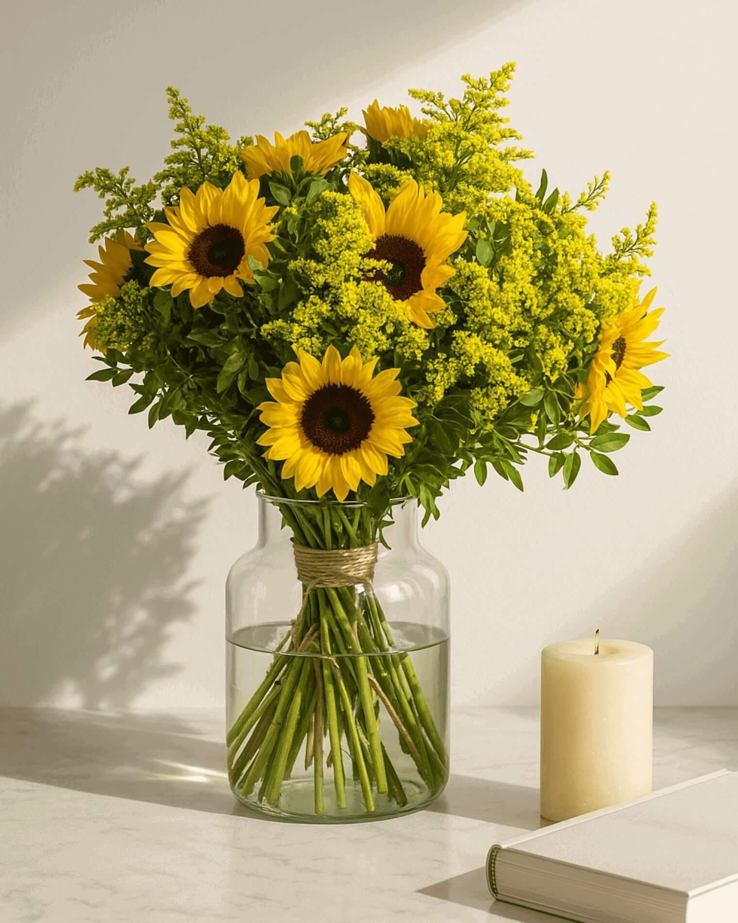 Para que tu ramo de girasoles brille como el sol, sigue estos sencillos pasos:
